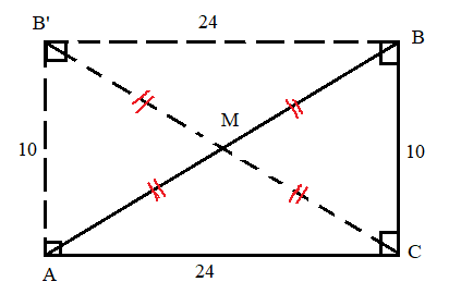 Diagonals of a rectangle are equal and bisect each otheri.e. CM = MB = B'M = AM = 13