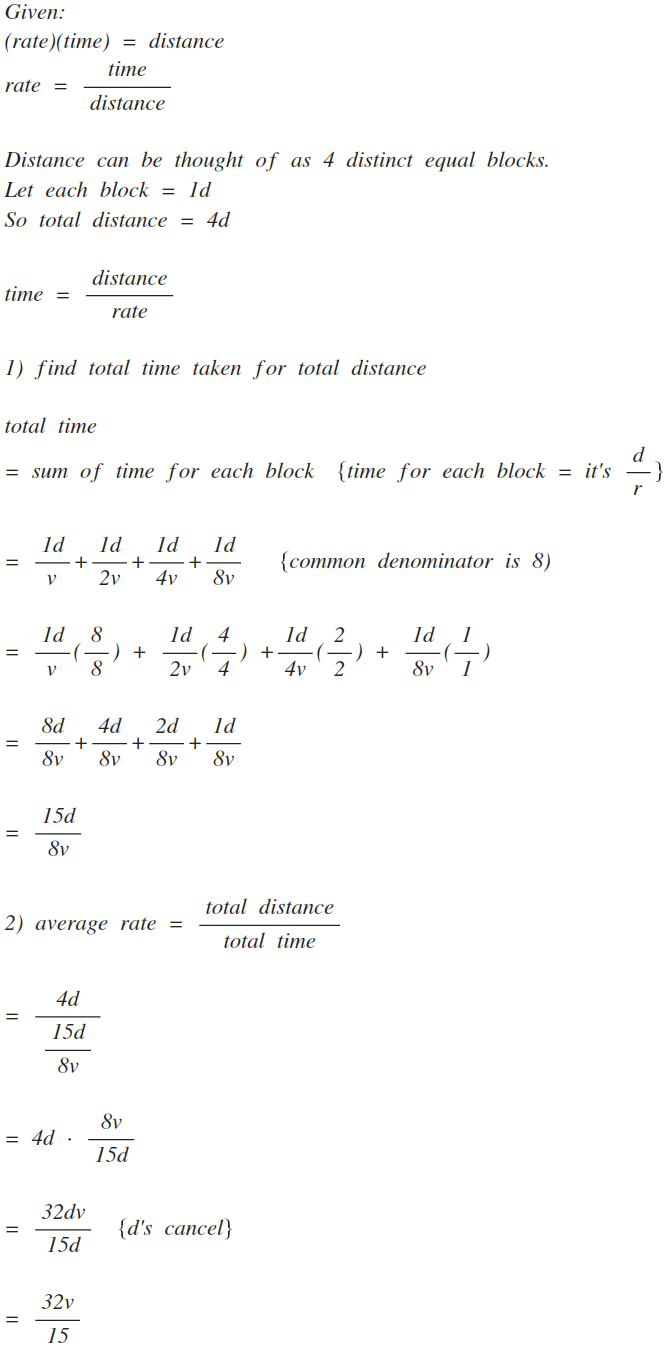 TOTAL travel time = 8/v + 4/v + 2/v + 1/v
