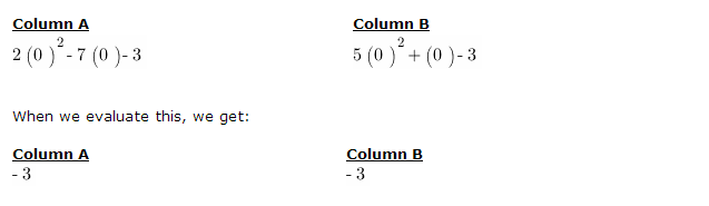 At this point, we can see that the Column A will evaluate to be zero, and Column B will not evaluate to be zero. We don’t really care about which column is greater. All we care about is that the two columns are not equal, which means the answer is D.
