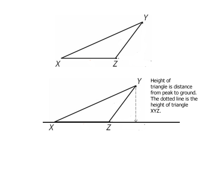 Better yet. Pretend they ask you to drop something from the top of that building. What path will it follow? Will it follow a path down the side of the triangle? No. It will follow a path straight down. That is your height. That path straight down is the height of the triangle. That path is the dotted line from Y to W.